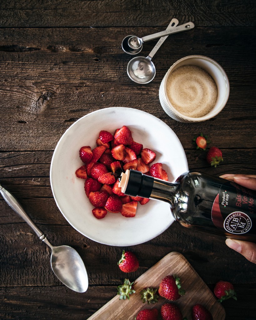 1 cup coconut milk 1 cup coconut cream (I recommend getting canned coconut cream) 4 Tbsp sugar 1 tsp vanilla extract or beans from a 2” piece of vanilla 1 tsp agar powder 1 cup sliced strawberries 1 Tbsp sugar 3 tsp Balsamic Vinegar of Modena